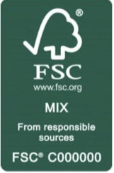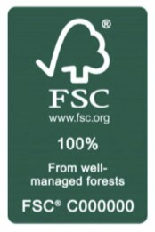 บ่งชี้ว่า วัสดุทั้งหมด มาจากป่าที่ได้รับการรับรอง FSC ผลิตภัณฑ์จึงสะท้อนการจัดการป่าที่ดูแลความหลากหลายทางชีวภาพและให้ประโยชน์กับชุมชนท้องถิ่น